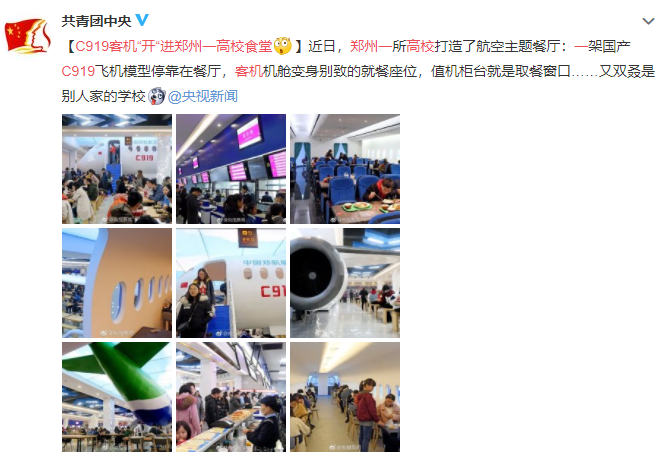 前段時(shí)間,微博@共青團(tuán)中央分享的一則“C919客機(jī)‘開’進(jìn)鄭州一高校食堂”的消息引起網(wǎng)友熱議評論精彩紛呈。