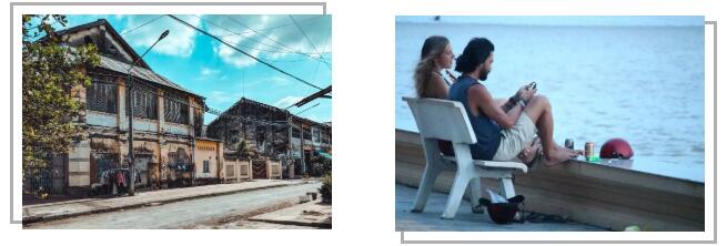 走在貢布市街頭,隨處可見的法式建筑,會使你有一種誤入上世紀法國的時空錯落感,但市場內(nèi)充滿著的濃濃東南亞氣息,又會將你拉回到了現(xiàn)實當中。貢布曾是法屬殖民地,如今成為了法國人精心修飾過的浪漫度假小鎮(zhèn)。每天圍坐在河邊的酒吧里看著落日吹風,偶爾有些游客要了一瓶啤酒,便在河邊坐上一天。時間在這里仿佛不再流逝,你可以就這樣悠閑地享受貢布小城里慵懶的午后時光。