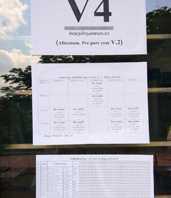 這是V4班的課程表,都是老撾文,所以大家也不用糾結了,就當走個形式,還是聽小編講解吧~