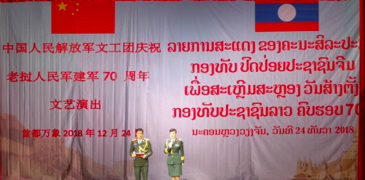 中國(guó)人民解放軍文工團(tuán)慶祝老撾人民軍建軍70周年文藝演出12月24日晚在老撾首都萬象舉行。